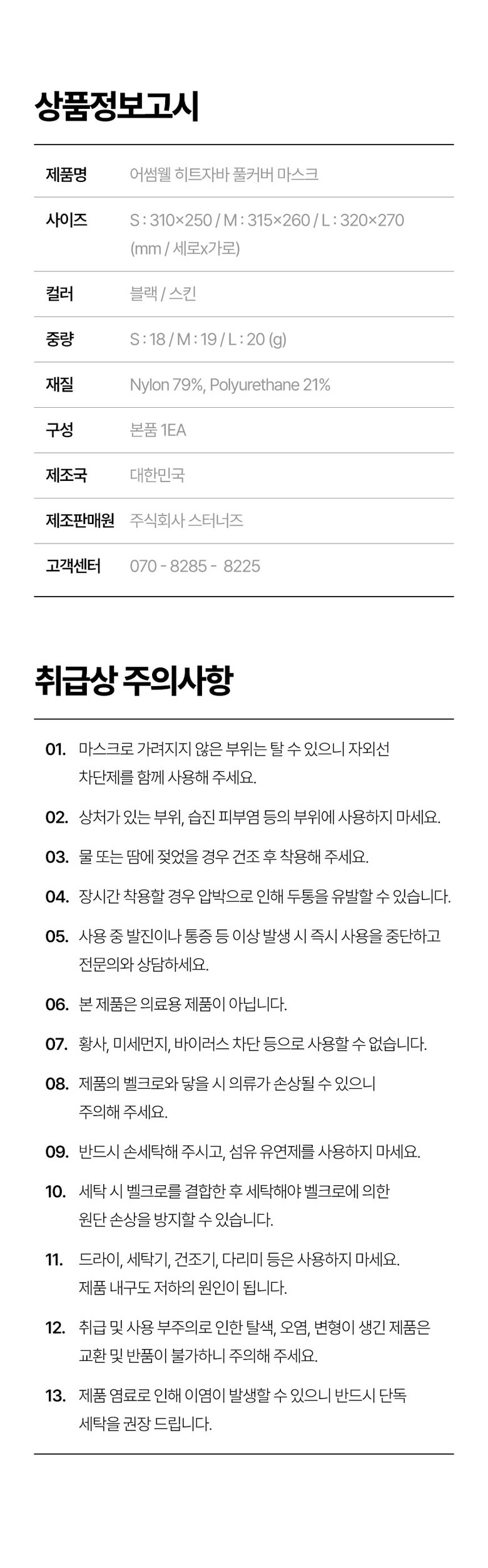 | 제조국 | 상품 상세페이지 참조 | 취급시 주의사항 | 상품 상세페이지 참조 |