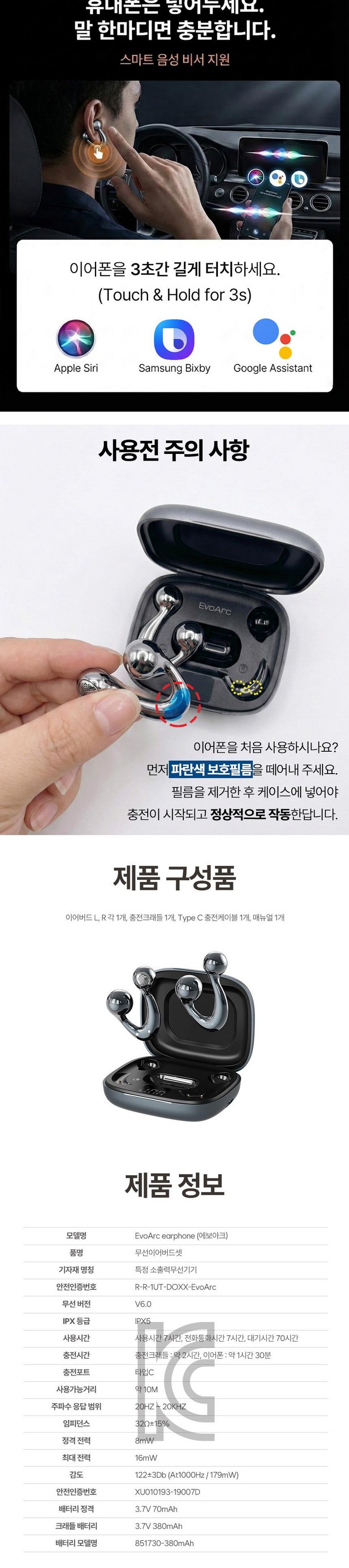 | 품명 및 모델명 | 무선이어버드셋 에보아크 | KC 인증정보 | R-R-1UT-DOXX-EvoArc |