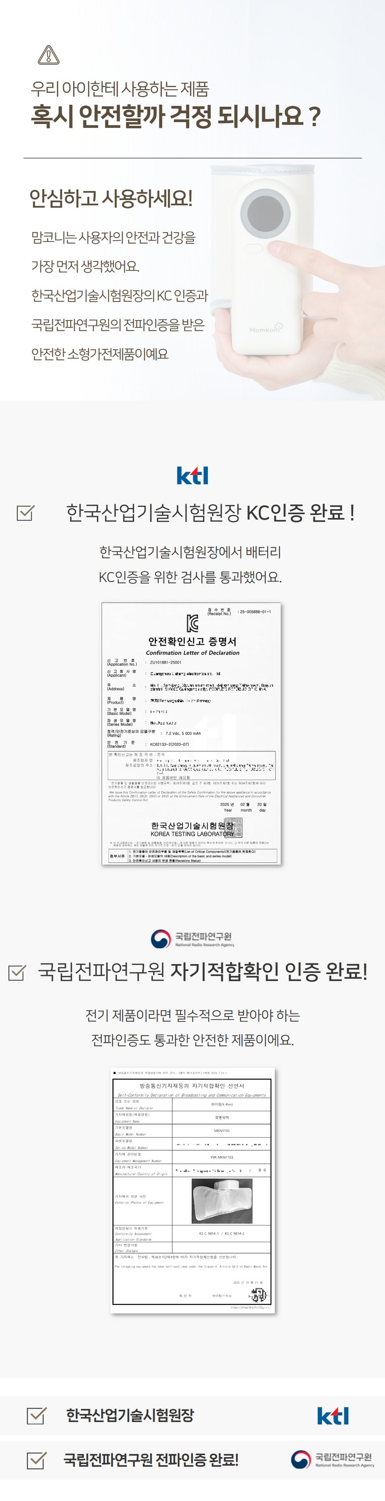| 품명 및 모델명 | 품명 : 맘코니 젖병워머 / 모델명 : MKN1103 | KC 인증정보 | ZU101681-25001A |