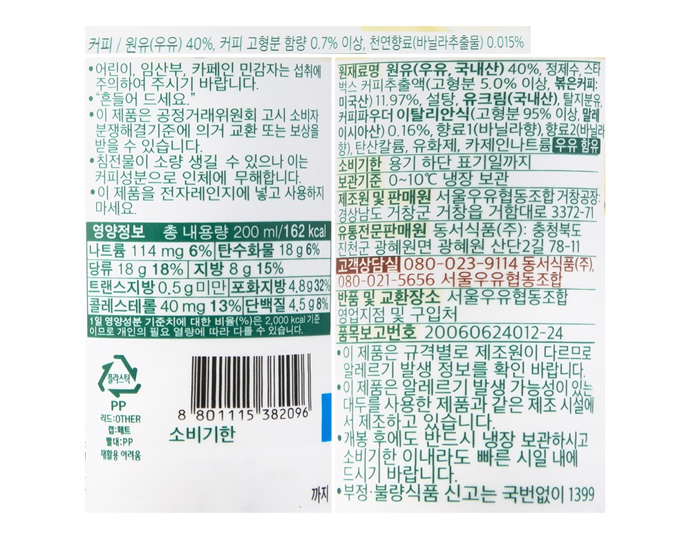 | 제품명 | STARBUCKS 바닐라라떼 | 식품의 유형 | 커피 |
