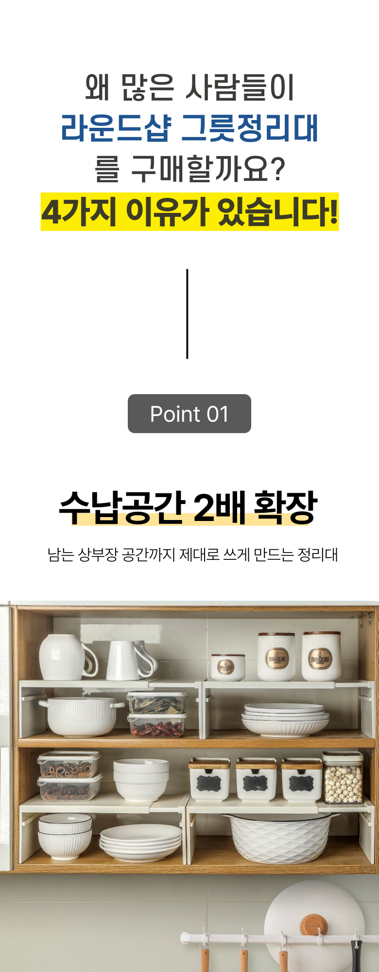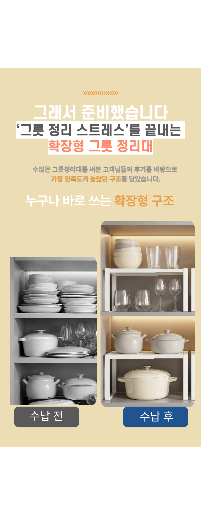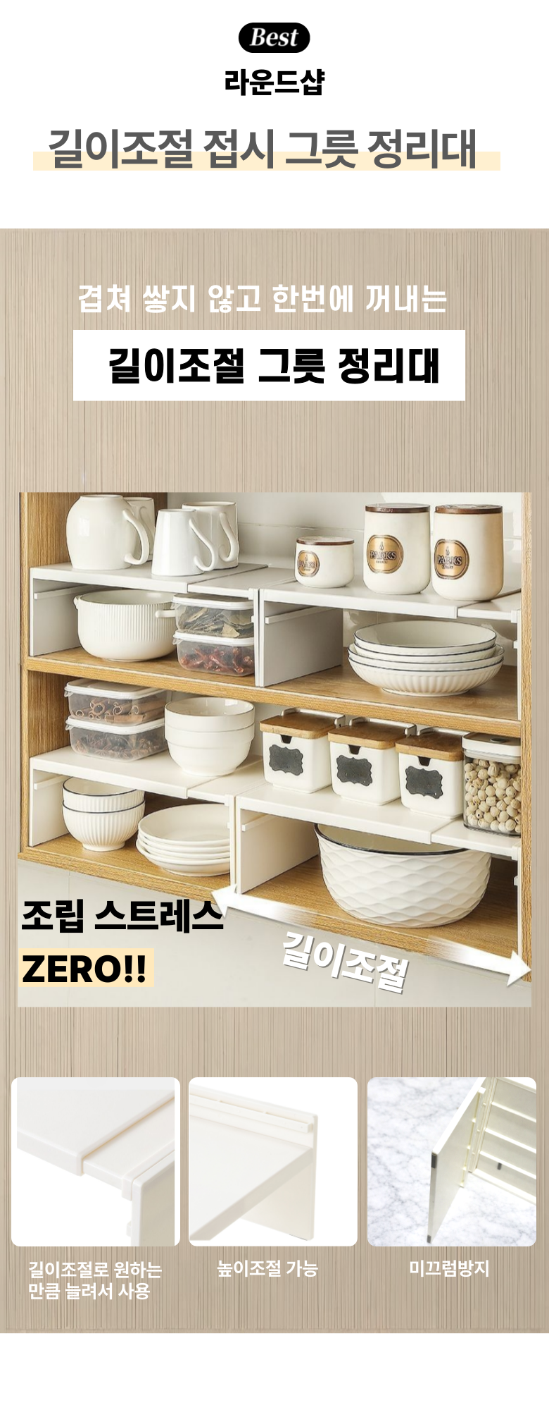 라운드샵 길이조절 접시 그릇 정리대