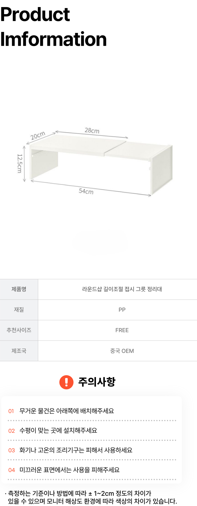 - ㆍ모니터 해상도의 차이로 인해 색상이나 이미지가 실제와 달라, 고객이 단순 변심으로 교환/반품을 무료로 요청하는 경우