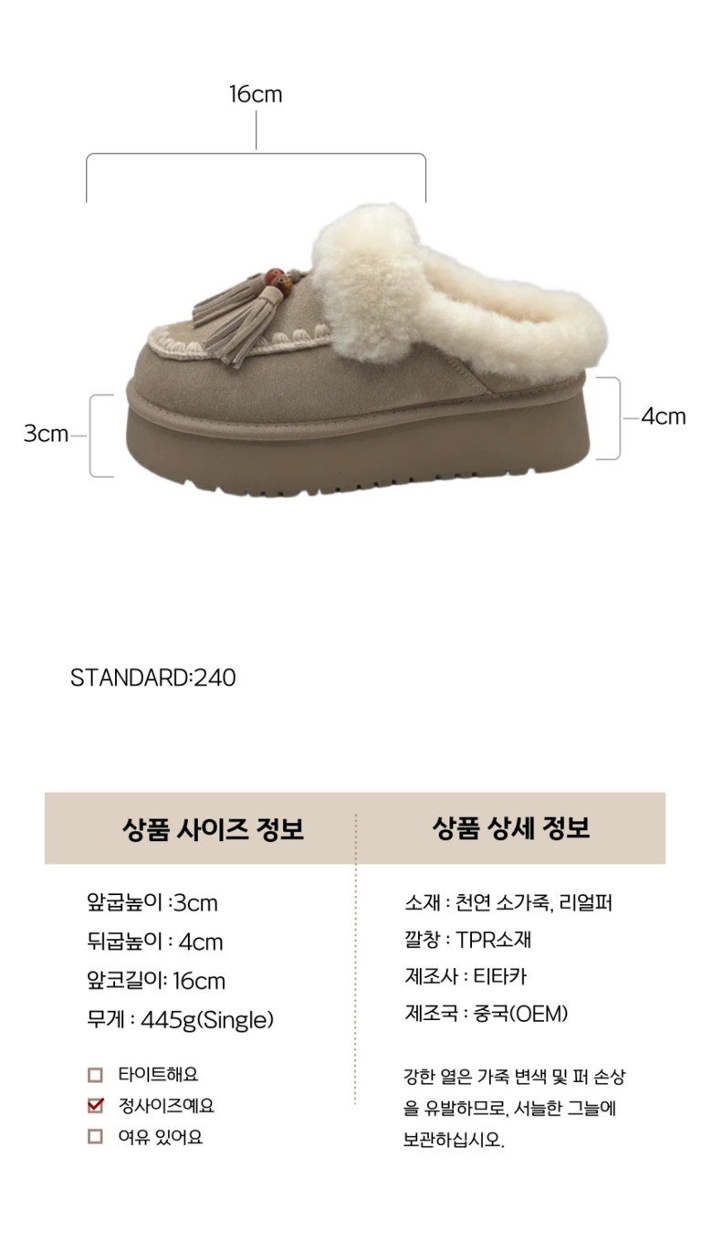 티타카 여성 실외용 프리미엄 털 슬리퍼