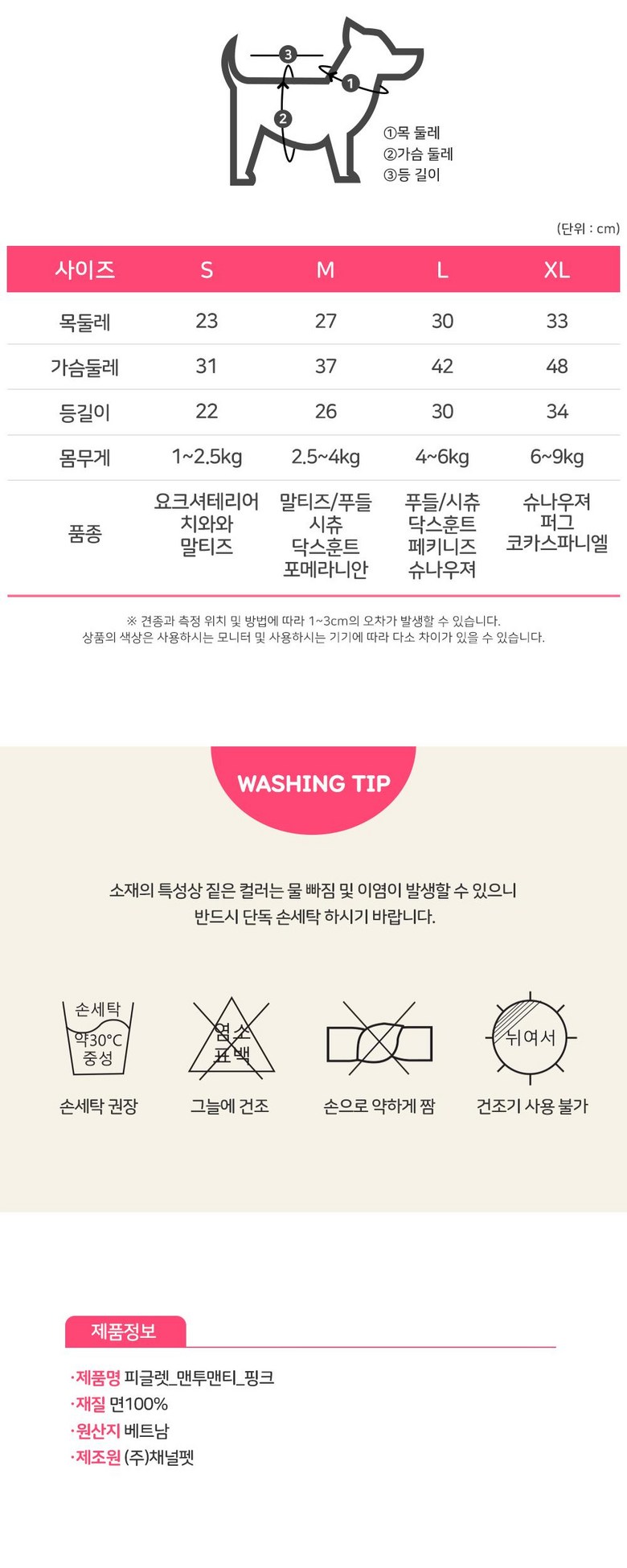- 애견용품 의류 형태: 맨투맨