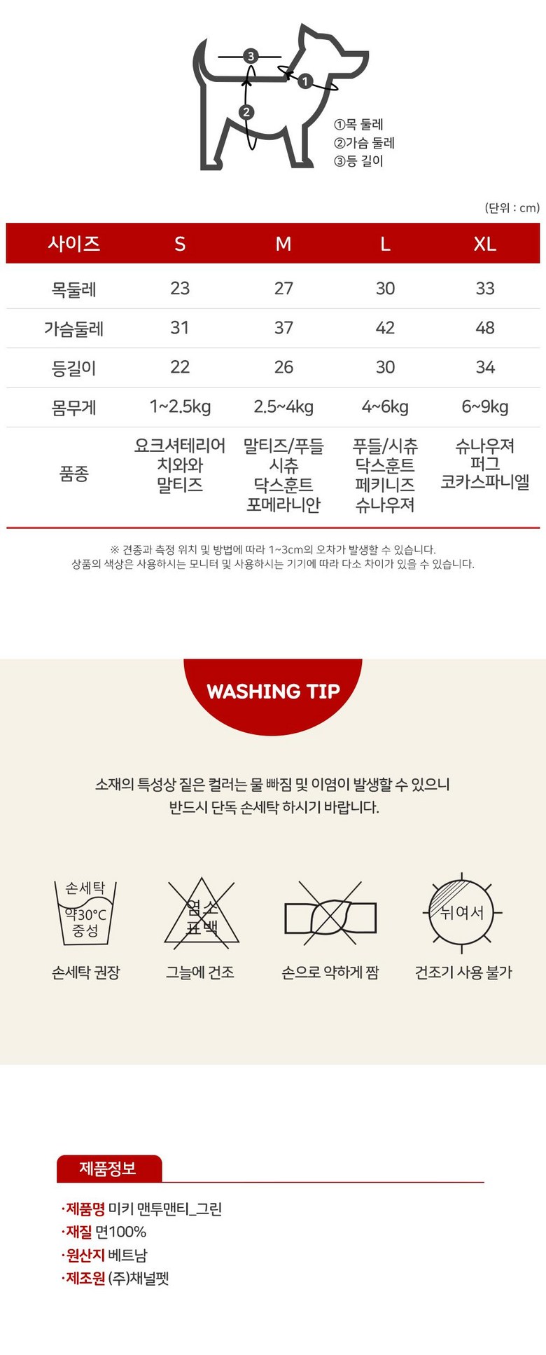 | 제조국 | 상품 상세페이지 참조 | 세탁방법 및 취급시 주의사항 | 상품 상세페이지 참조 |