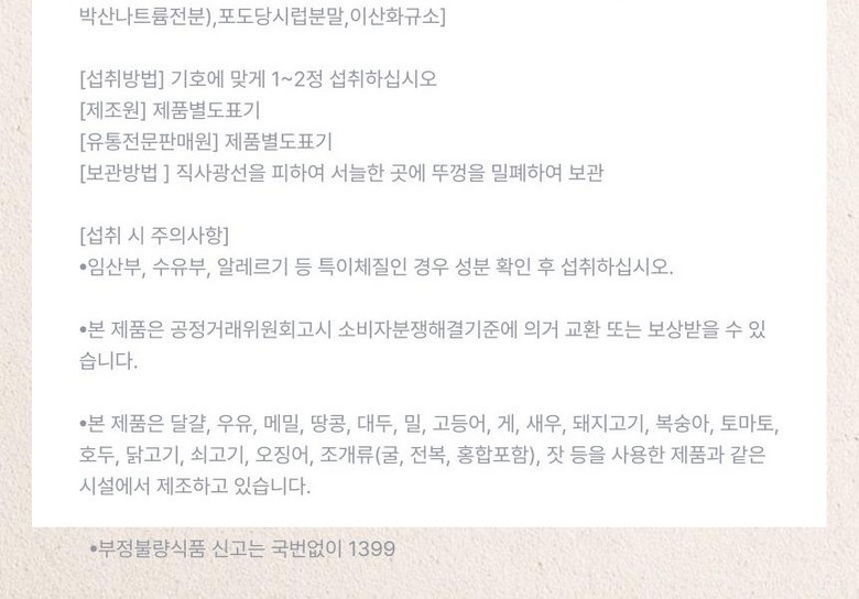 | 식품의 유형 | 상품 상세페이지 참조 | 생산자/소재지(수입품의 경우 생산자, 수입자 및 제조국) | 상품 상세페이지 참조 |