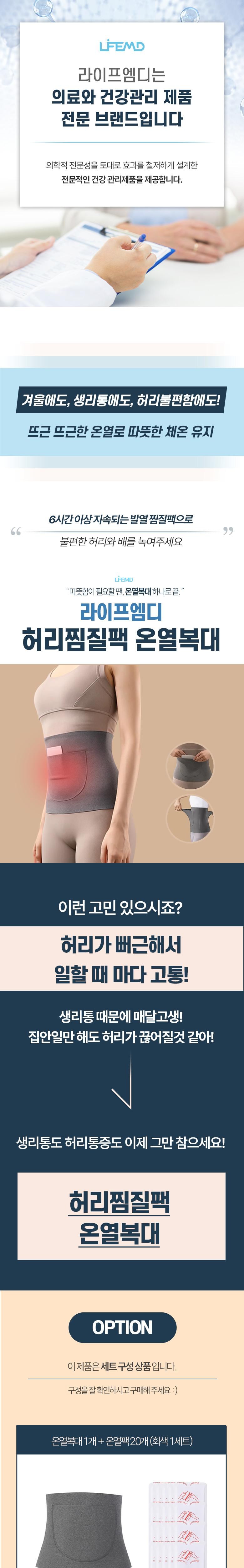 라이프엠디 복부 허리 복대 + 온열 찜질팩 20개 배워머 복부 찜질 주머니 포켓형 워머 보온 핫팩 생리통 허리 척추 케어 찜질복