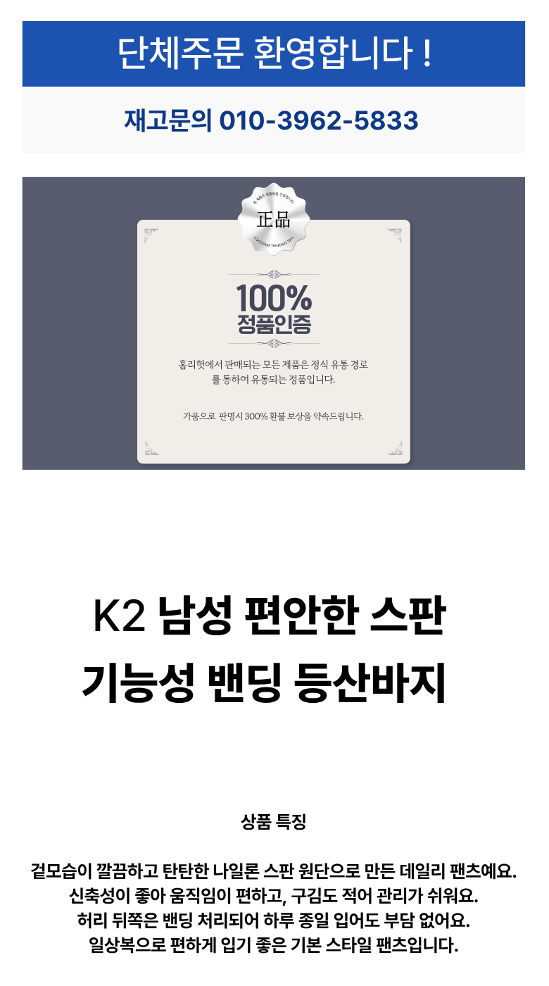 | 제품 소재 | 상품 상세페이지 참조 | 색상 | 상품 상세페이지 참조 |