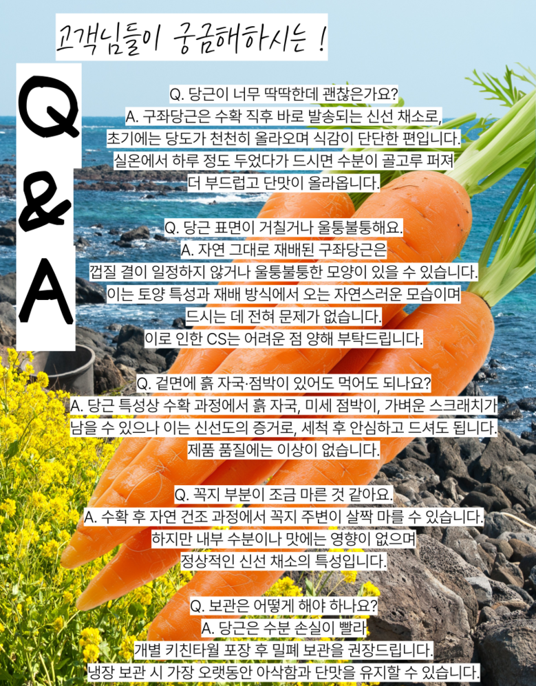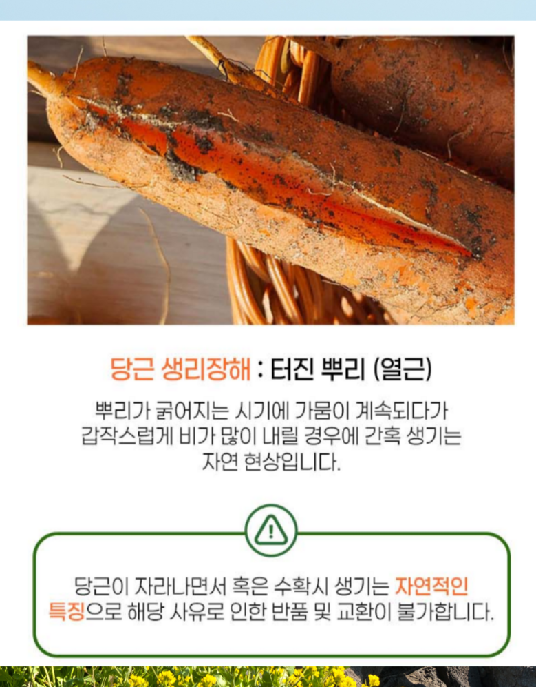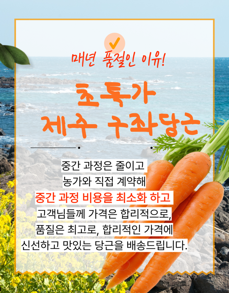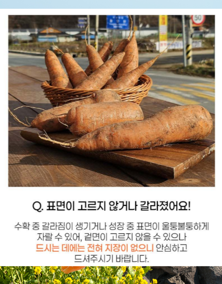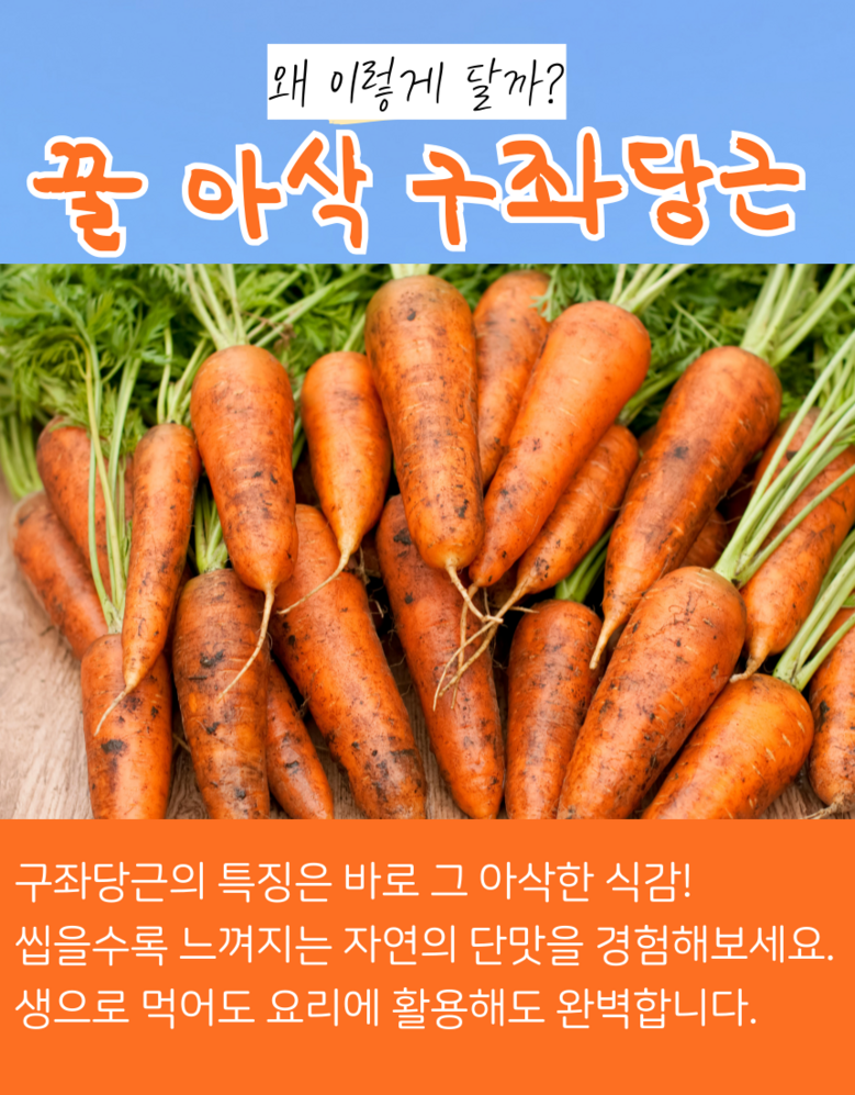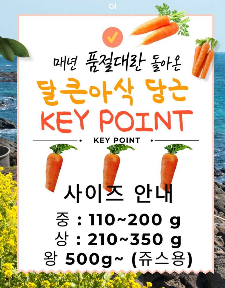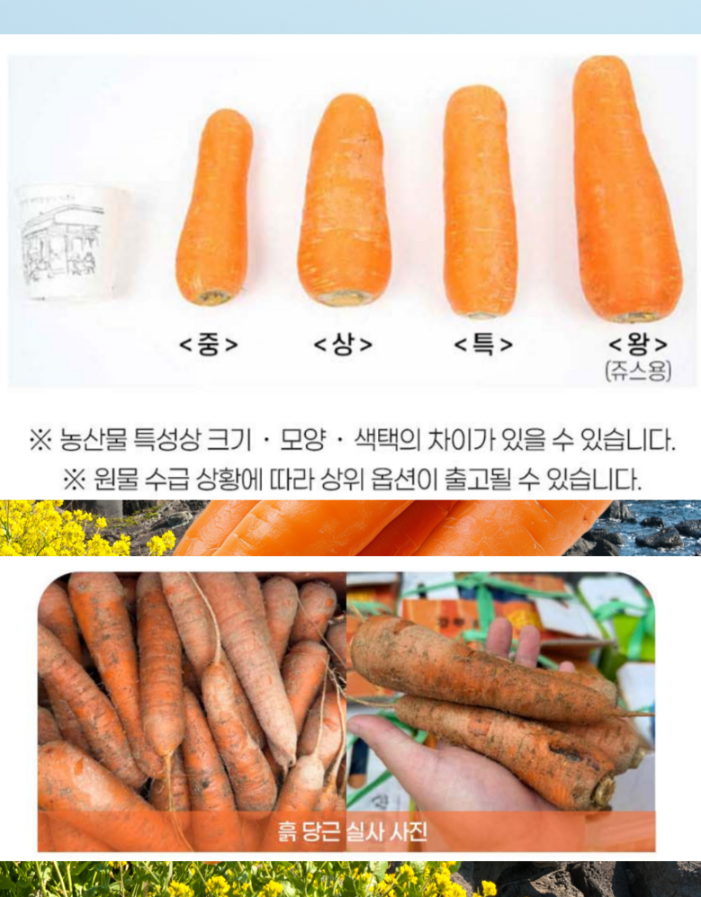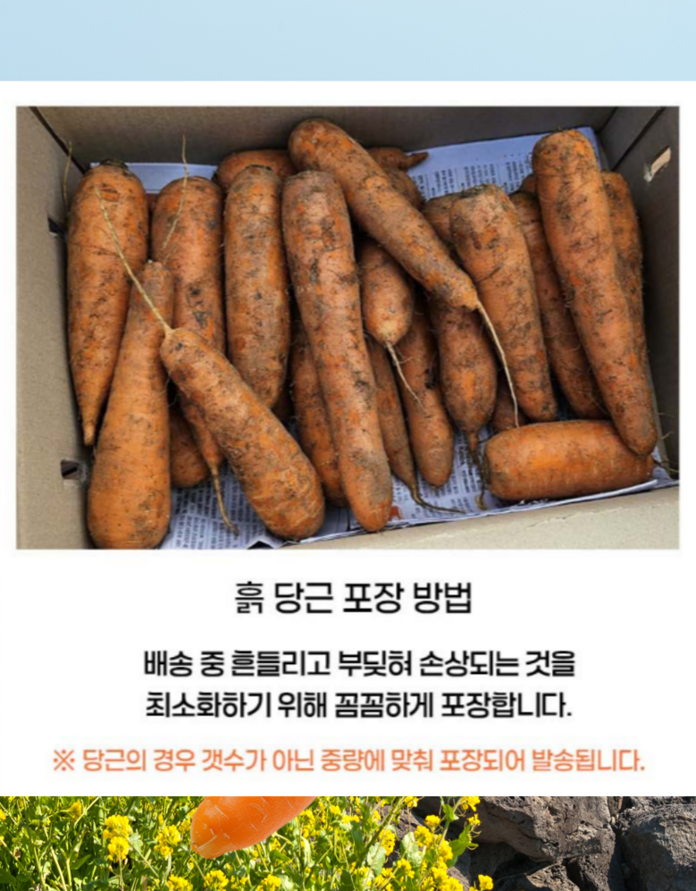 | 품목 또는 명칭 | 구좌당근 | 포장단위별 내용물의 용량(중량),수량,크기 | 1박스 |