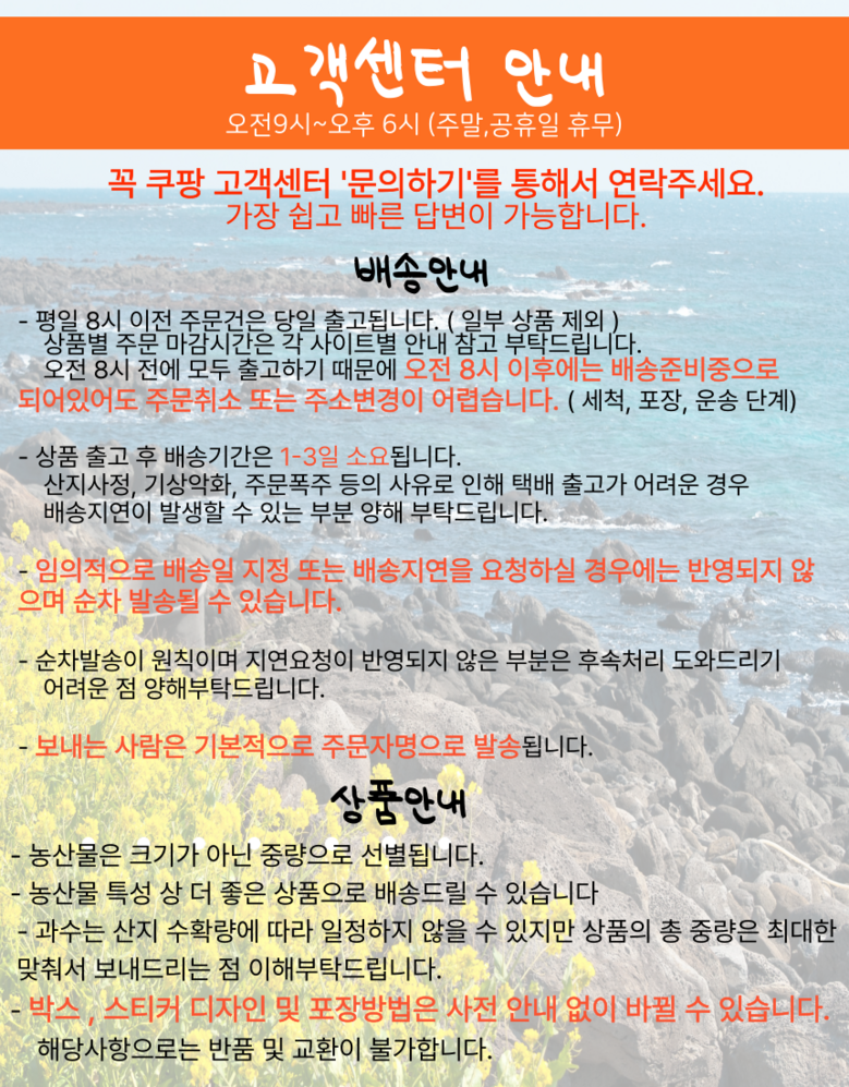 - 구매한 상품의 취소/반품은 마이쿠팡 구매내역에서 신청 가능합니다.