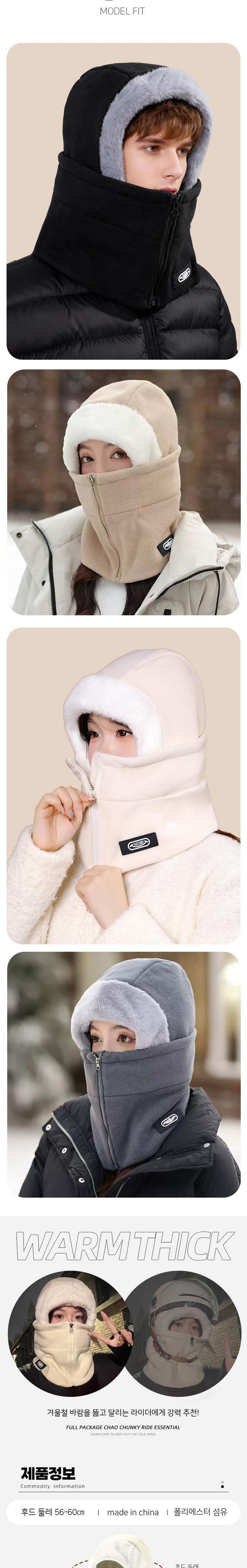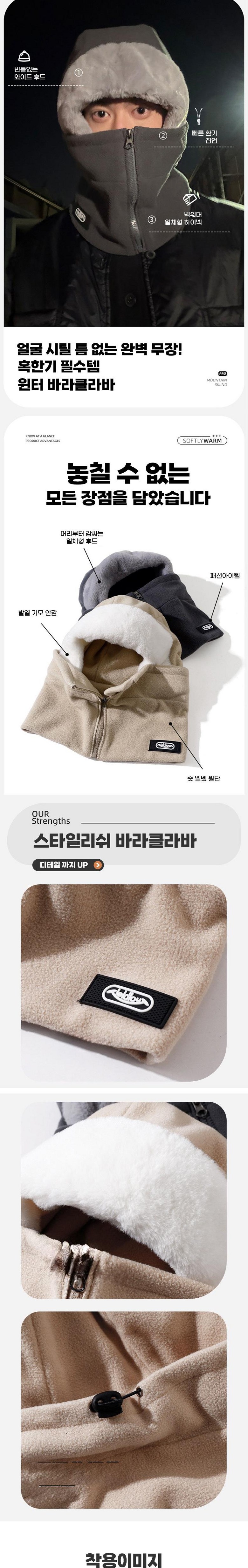 리바앤코 3in1 넥워머 바라클라바 방한모자 남녀공용 집업 바라클라바 후드 넥워머 방한마스크 겨울