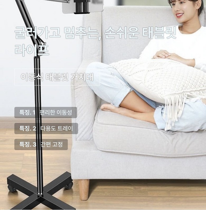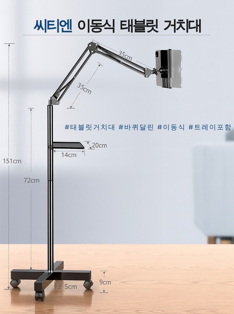 씨티엔 이동식 태블릿 거치대 바퀴달린 스탠드 트레이포함