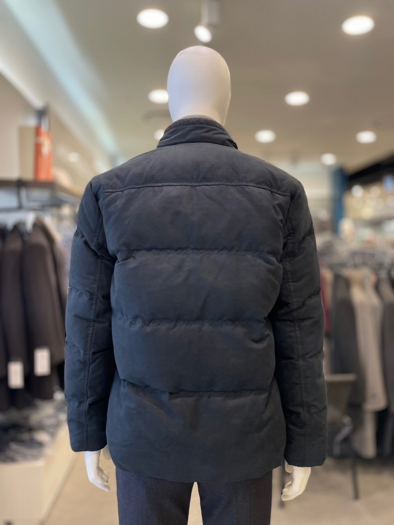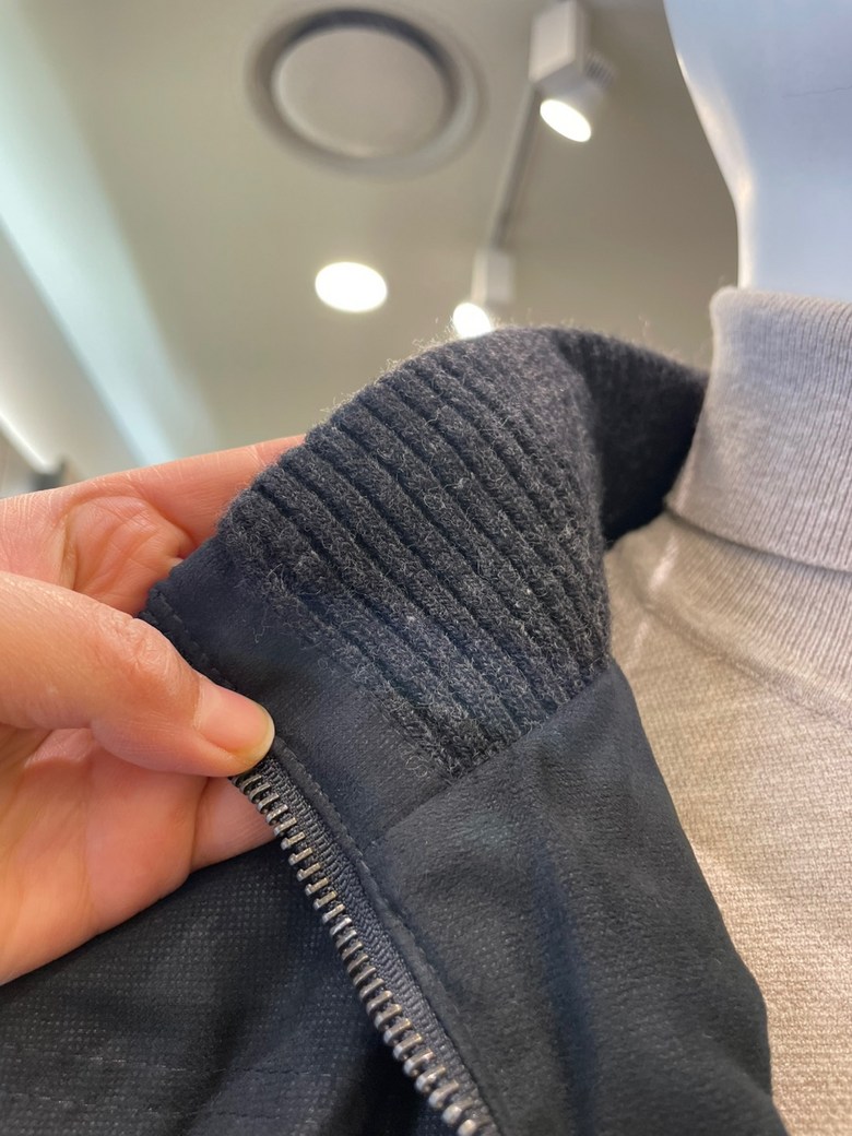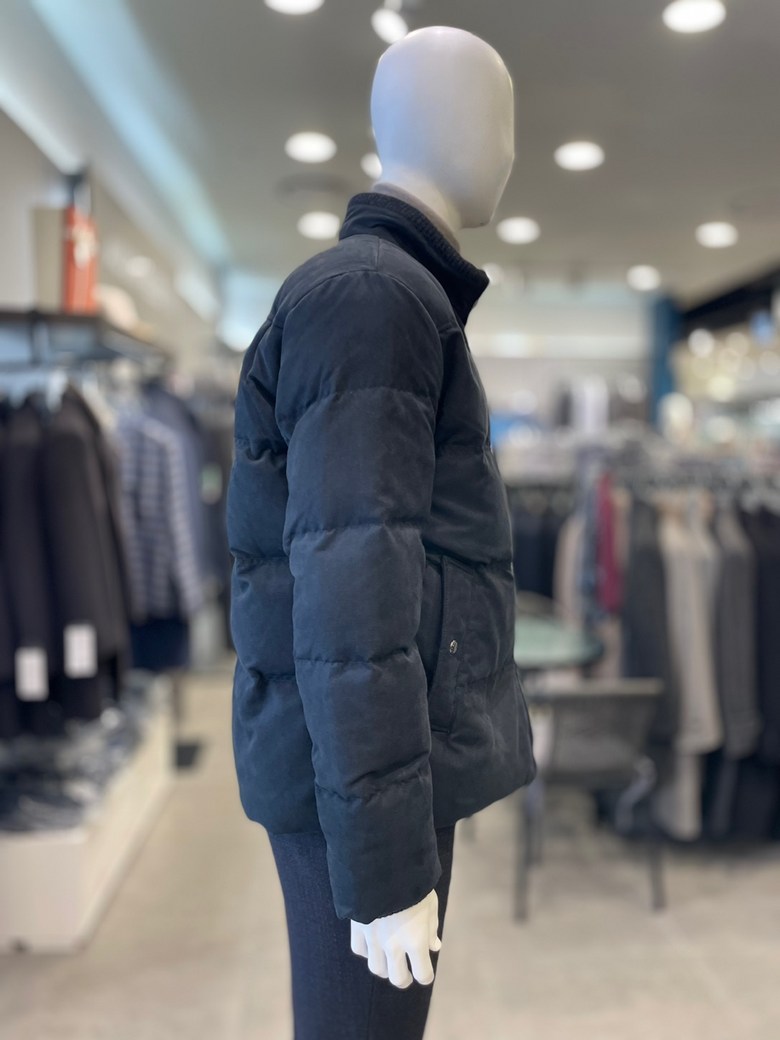 -니트에리 배색이 포인트인 내추럴한 외관의 미들 다운 블루종