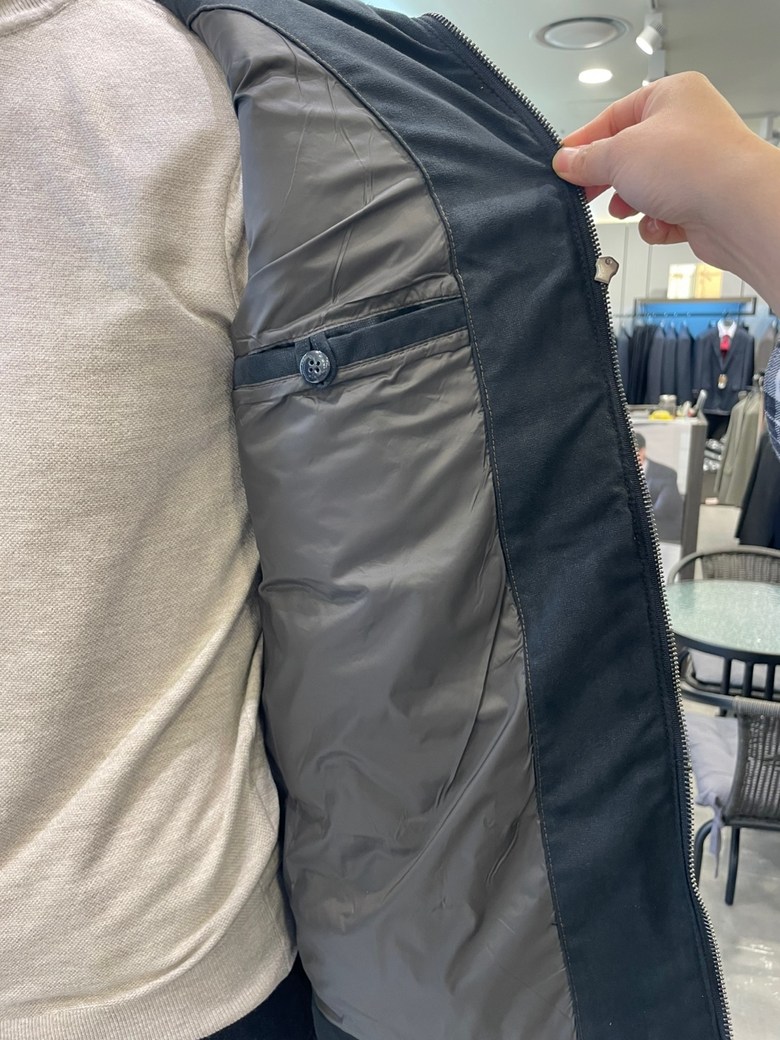-안사양에서도 가슴부위 양쪽 포켓팅 포함하여 허리부위에도 몸판소재로 포켓팅이 있어 수납의 편의 성 높힘