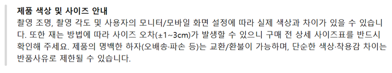 - ㆍ교환/반품에 관한 일반적인 사항은 판매자가 제시사항보다 관계법령이 우선합니다.
