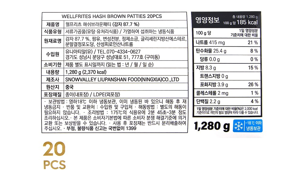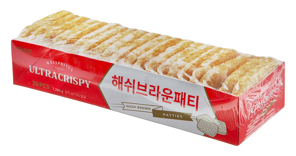 해쉬브라운은 감자의 질감을 살려 노릇노릇하게 구운 튀김으로, 패스트푸드점에서 햄버거 속재료나 사이드 메뉴로 만나볼 수 있었는데요. 겉은 바삭하고 속은 감자가 덩어리째 씹혀 고소한 맛이 일품이죠. 집에서도 간편히 조리해 양껏 드실 수 있도록 넉넉하게 구성했습니다. 프라이팬 혹은 튀김기에 약 3분간 조리해 간식 혹은 브런치 메뉴로 활용해보세요.