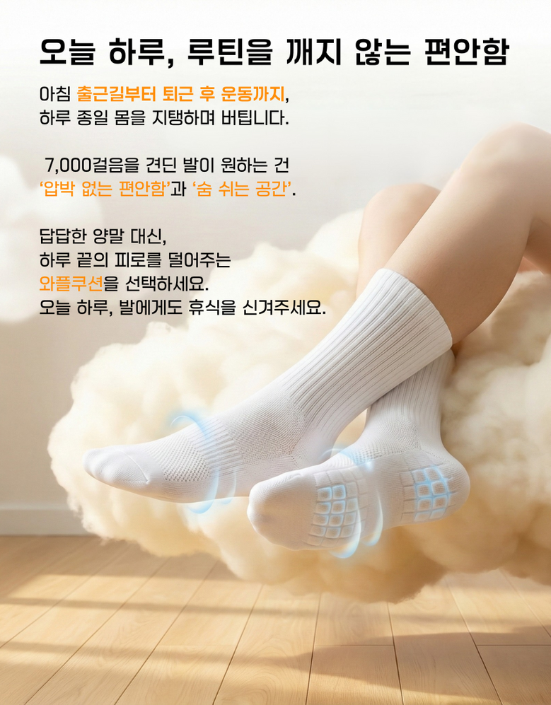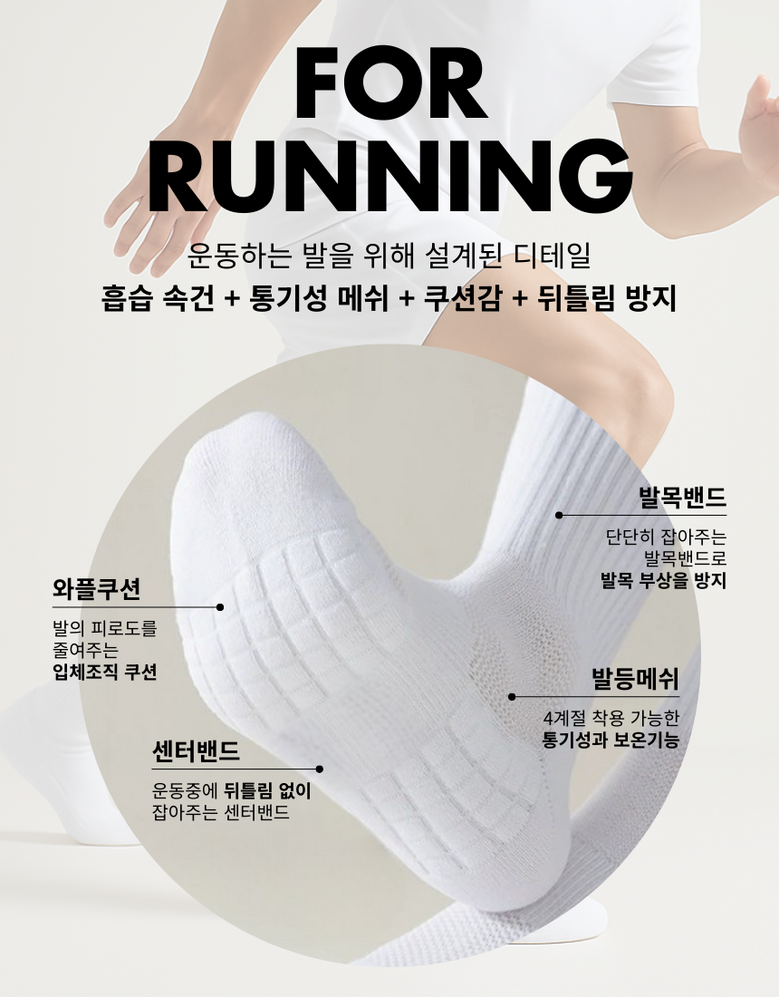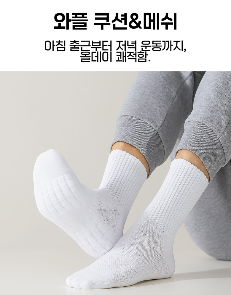 데일리 와플 쿠션 스포츠 양말 크로스핏 러닝 남성 여성 5켤레