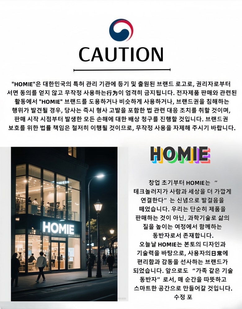 | 제조자(수입자) | HOMIE | 제조국 | MADE IN CHIAN |