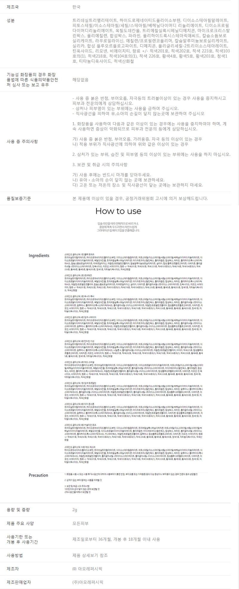 | 용량(중량) | 2g | 제품 주요 사양 | 모든 피부용 |