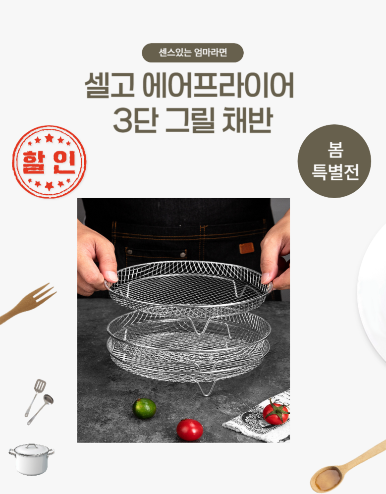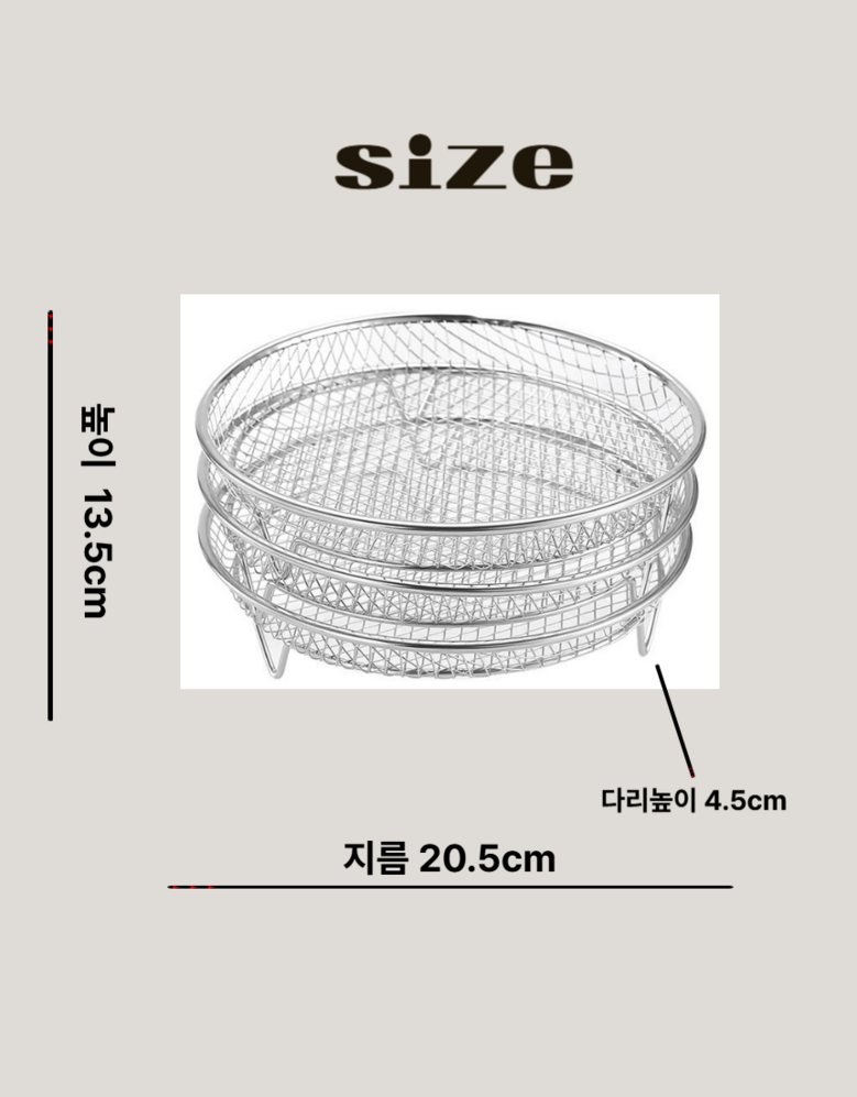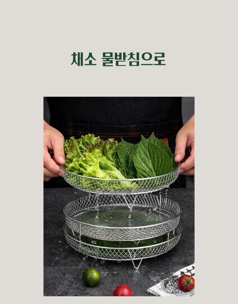 | 품명 및 모델명 | 셀고 에어프라이어 3단 그릴 스텐채반 다용도 튀김거름망 | 재질 | 스테인레스스틸 |