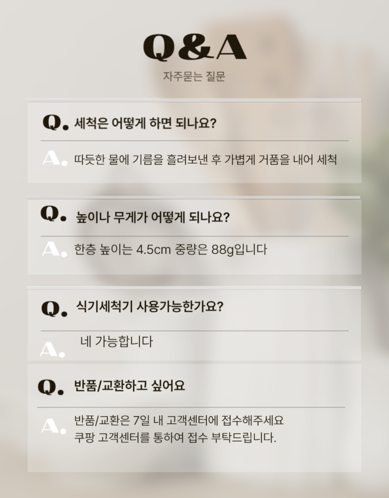 - 가격, 판매자, 교환/환불 및 배송 등 해당 상품 자체와 관련 없는 문의는 고객센터 내 1:1 문의하기를 이용해주세요.