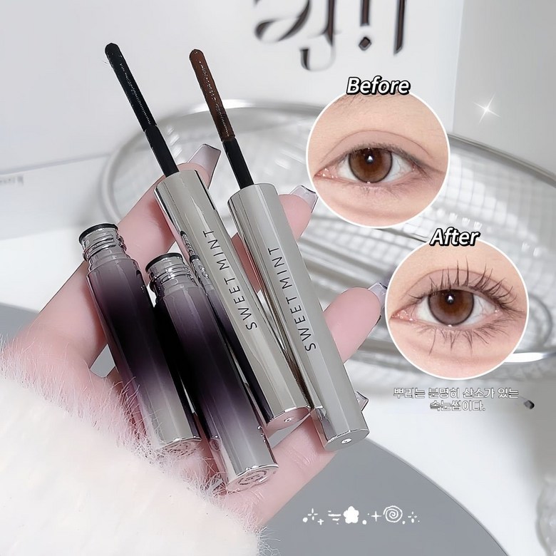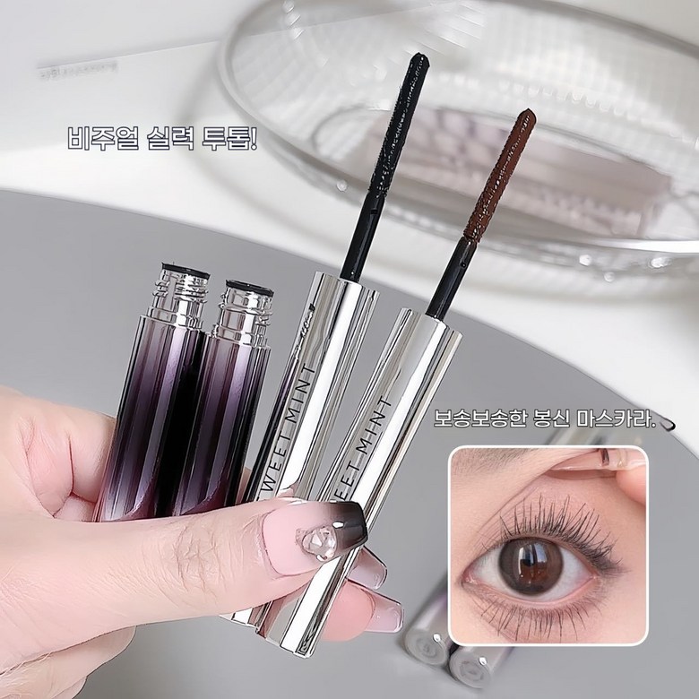 1+1마스카라 번지지 않는 마스카라 1순위 풍성 볼륨 마스카라 워터프루프 마스카라섬유조합 방수 속눈썹, 02#브라운*2, 1개