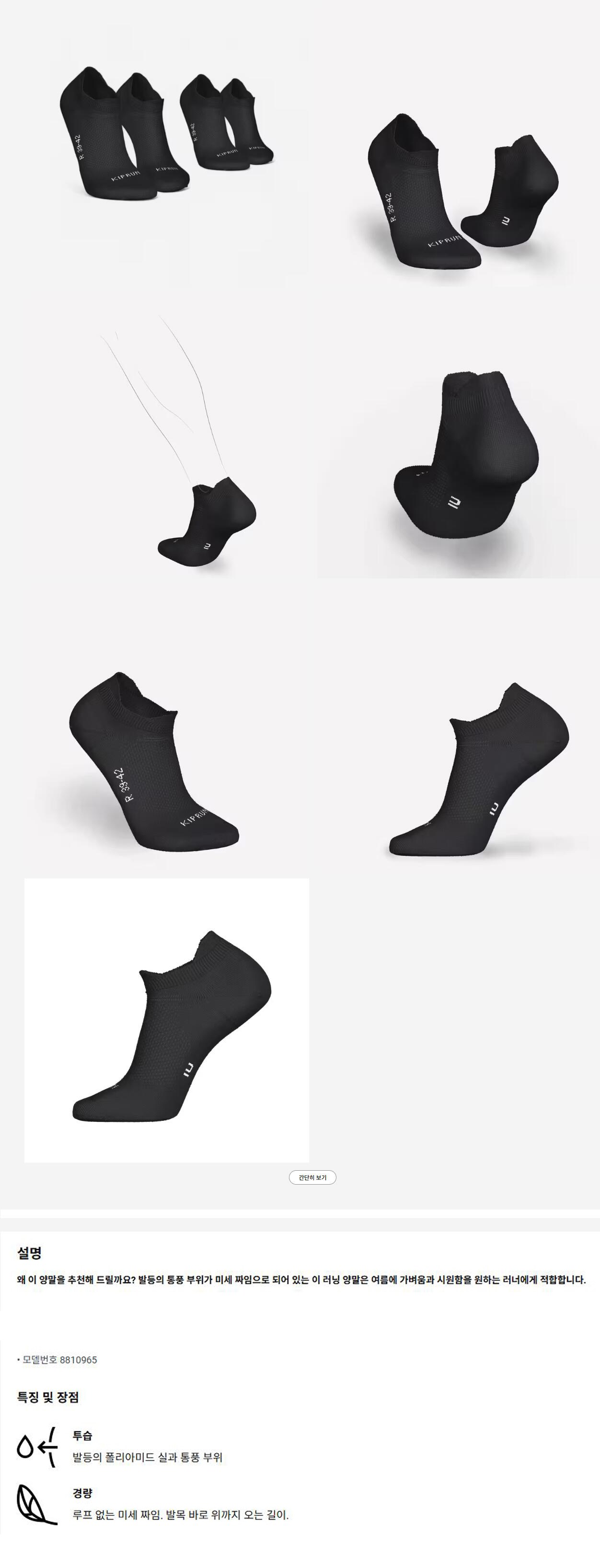 데카트론 러닝 얇은 런 500 발목 양말 8 2켤레
