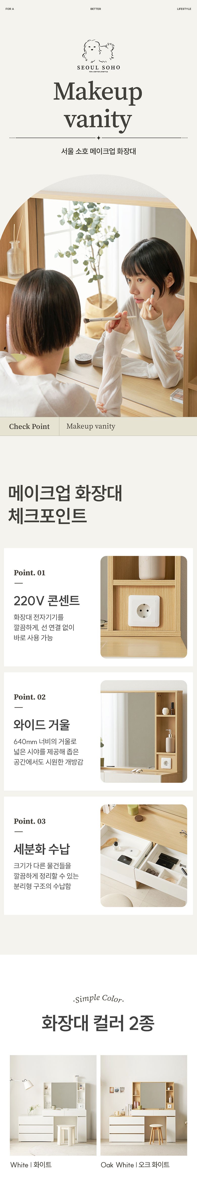 | 품명 | 서울소호 메이크업 화장대 방문설치 | KC 인증정보 | 본품 : 해당없음 / 콘센트 : SU04048-7001C |