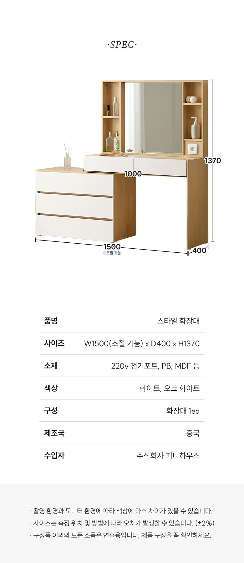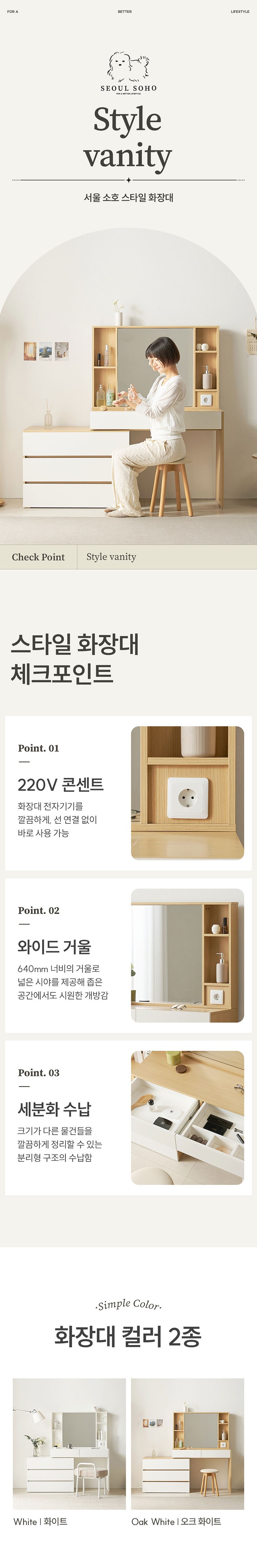| 품명 | 서울소호 스타일 화장대 방문설치 | KC 인증정보 | 본품 : 해당없음 / 콘센트 : SU04048-7001C |