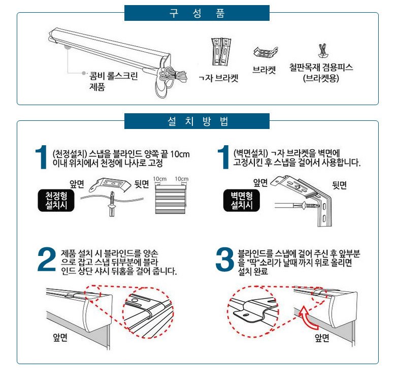 | 치수 | 180 x 220 cm | 제품구성 | 콤비블라인드 본체+설치부속 |