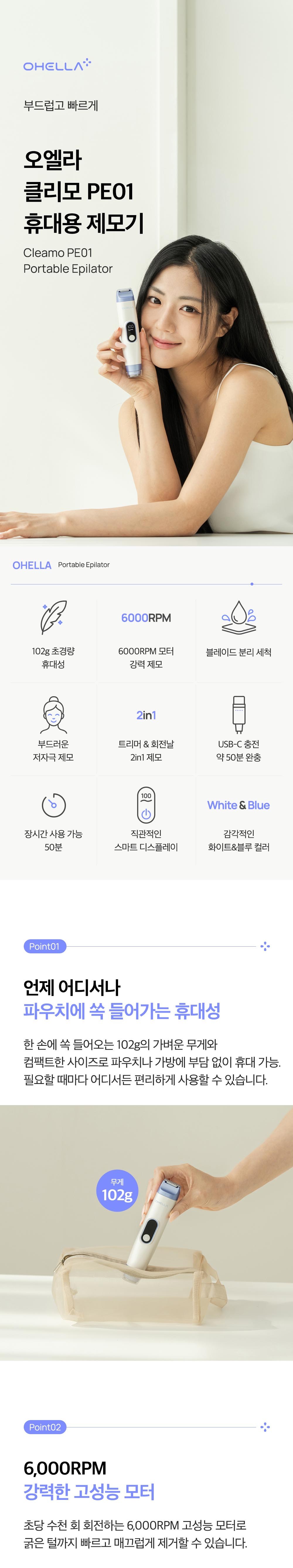 | 품명 및 모델명 | 오엘라 클리모 PEO1 휴대용 제모기 / PE01-LD-7508 | KC 인증정보 | 본품: R-R-ABS-PE01-LD-7508, 전지: XU103650-24001A |