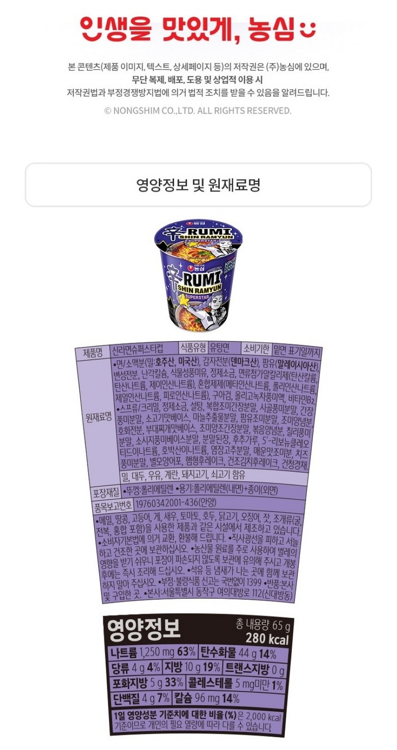 | 제품명 | 상품 상세페이지 참조 | 식품의 유형 | 상품 상세페이지 참조 |