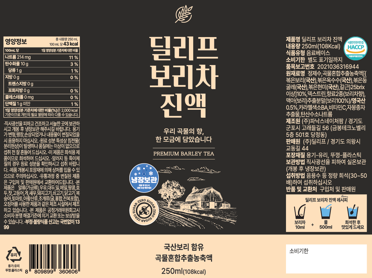 | 포장단위별 내용물의 용량(중량), 수량 | 250ml, 1개 | 원재료명 및 함량 | 컨텐츠 참조 |