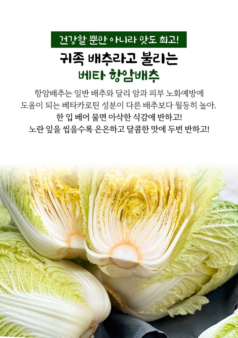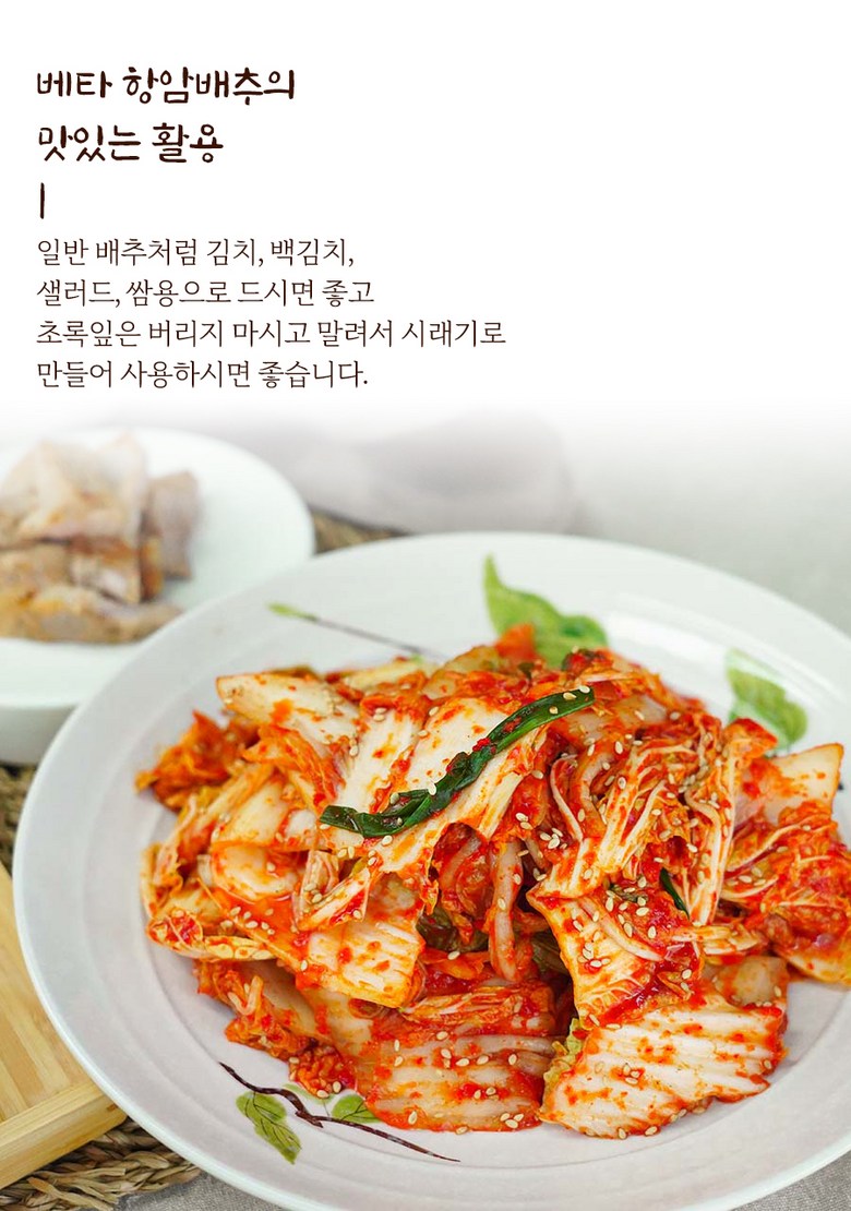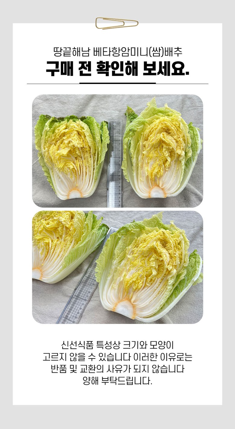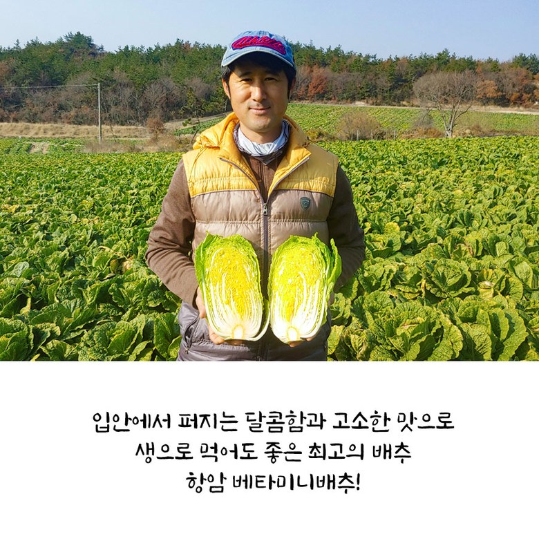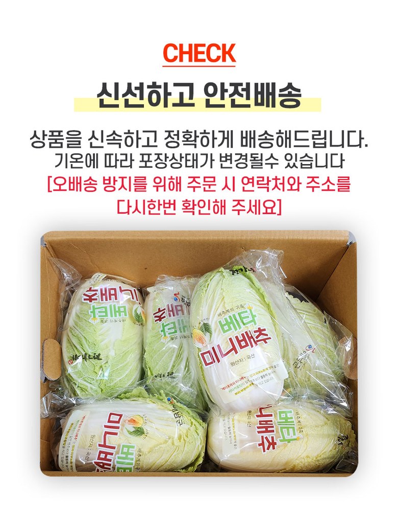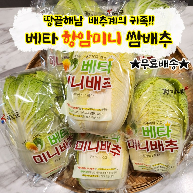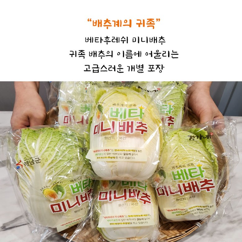| 품목 또는 명칭 | 해남 베타 미니배추 | 포장단위별 내용물의 용량(중량),수량,크기 | 2.5kg(3~4포기),10kg(4~7포기) |
