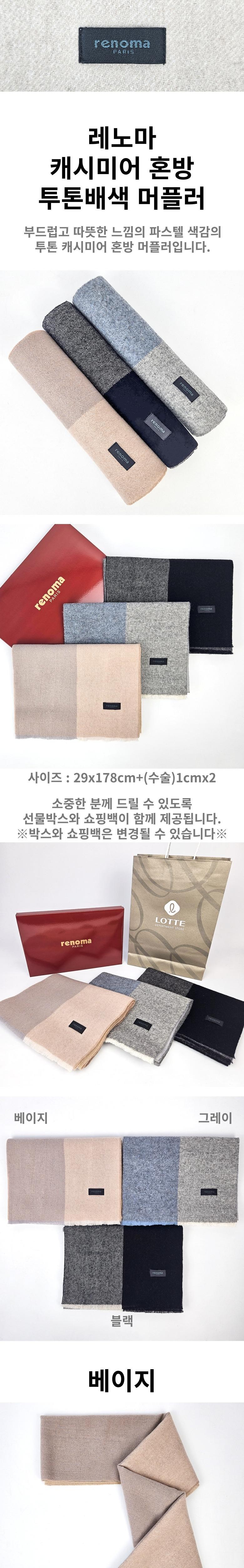[백화점 정품] 레노마 캐시미어 혼방 투톤배색 머플러 남녀공용 목도리 (선물포장)
