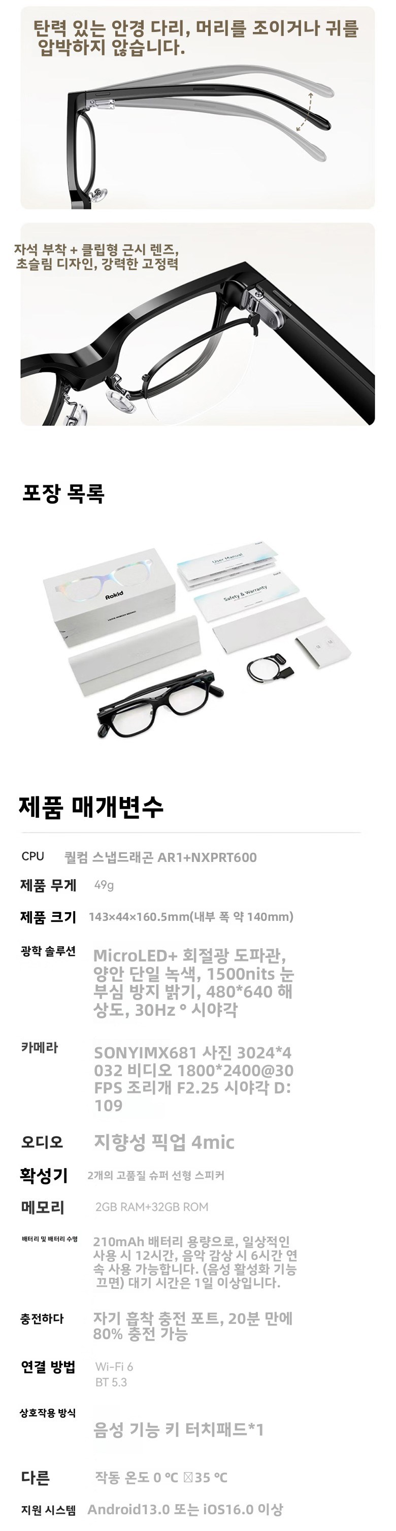 로키드 블루투스 스마트 안경 중국 도메스틱 버전