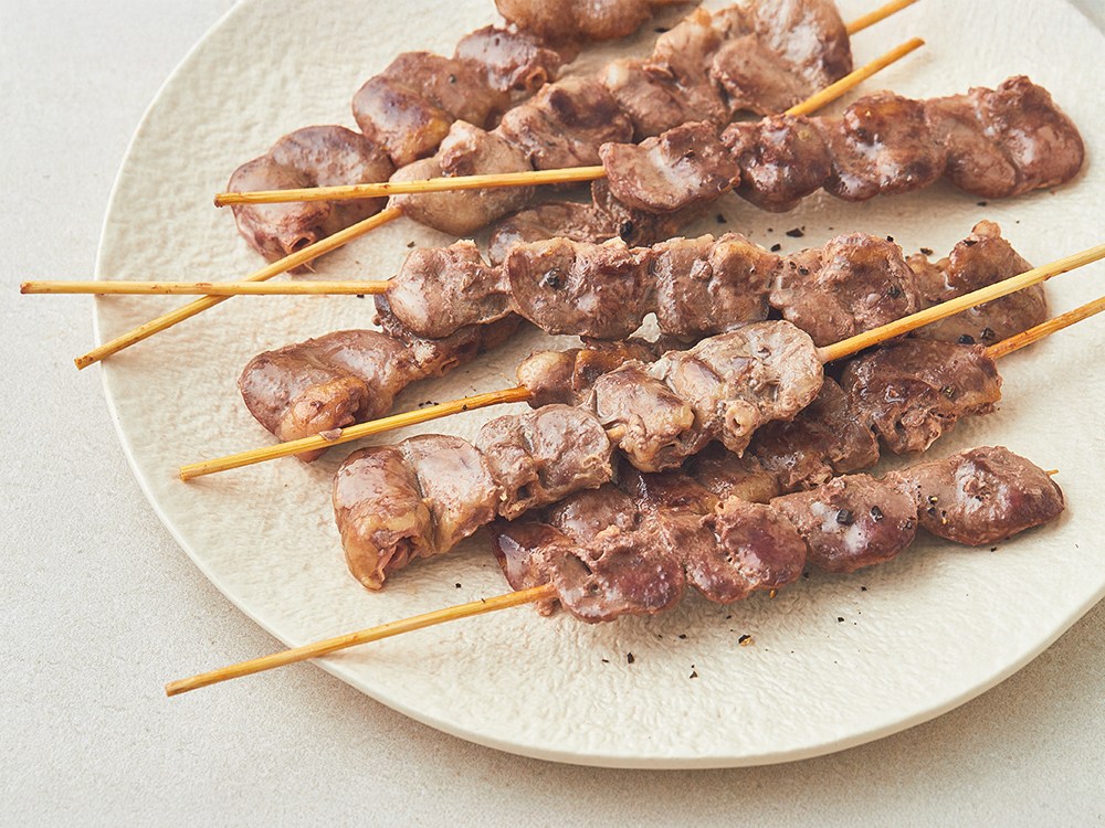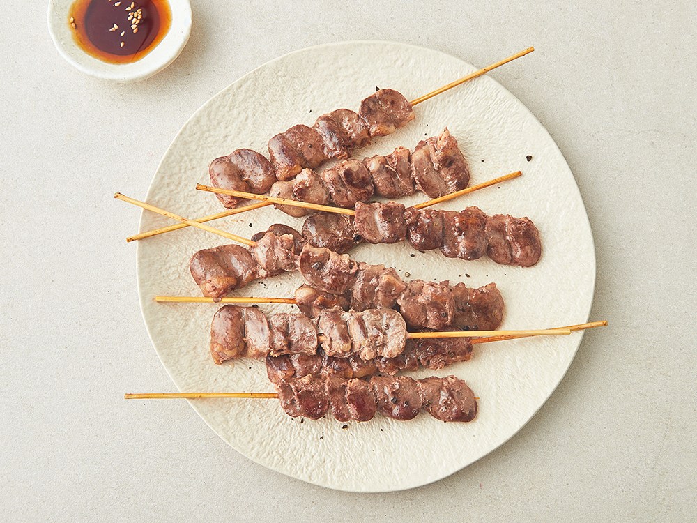 먹기 좋게 꼬치에 꿴 쫄깃한 닭 염통