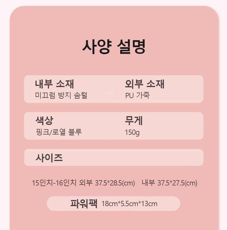 - 수납사이즈: 36~39.7cm(15.6인치)