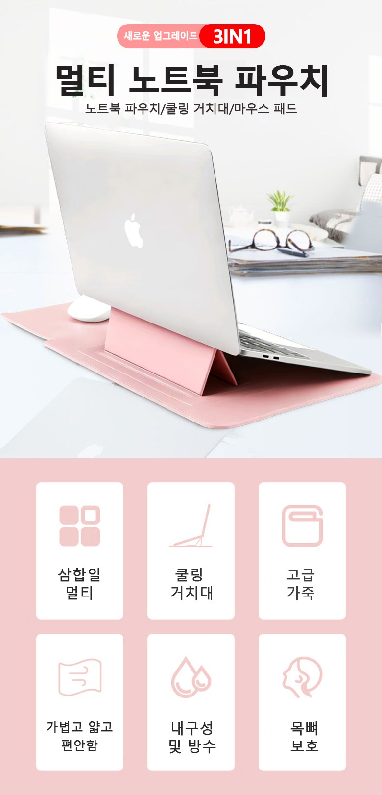 SEVOREN 다용도 노트북 파우치 거치대 패드 겸용 맥북 LG그램 삼성 13/14/15/16 인치 융쿠션 스크래치방지 휴대용 노트북 파우치 가죽 커버 가방 케이스
