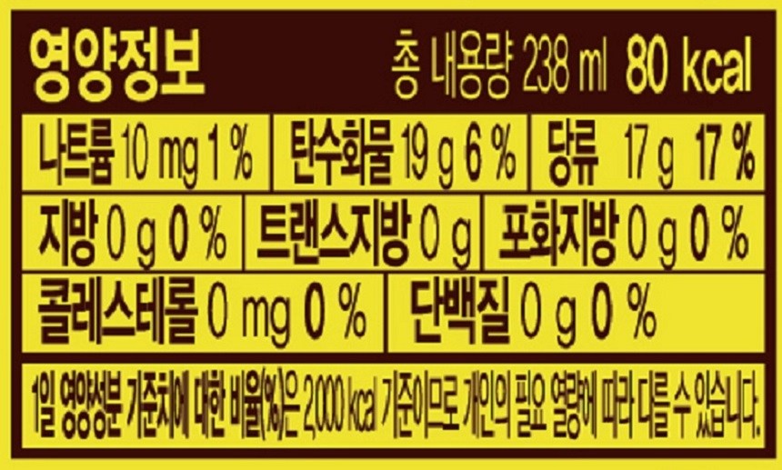 | 포장단위별 내용물의 용량(중량), 수량 | 238ml, 6개 | 원재료명 및 함량 | 컨텐츠 참조 |