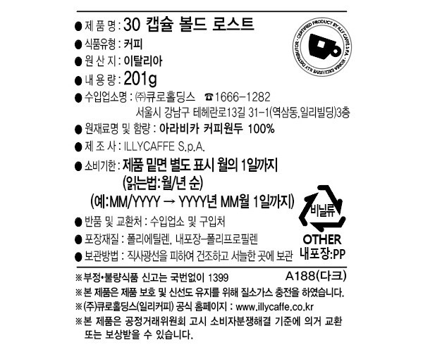 | 생산자 및 소재지 | 컨텐츠 참조 | 제조연월일, 소비기한 또는 품질유지기한 | 소비기한(또는 유통기한) : 2026년 10월 01일 이거나 그 이후인 상품<br />제조년월일 : 2025년 04월 10일 이후인 제조상품 |