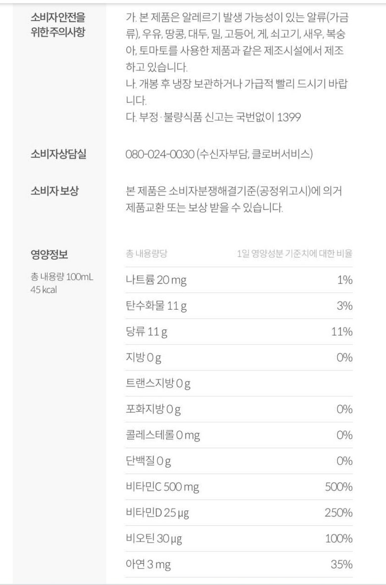 | 제품명 | 광동 비타500 | 식품의 유형 | 혼합음료 |