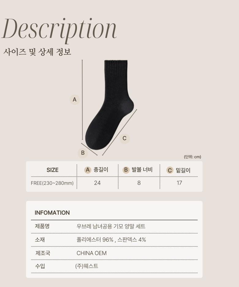 | 제품 소재 | 폴리에스터96% , 스판덱스4% | 색상 | 블랙,그레 |
