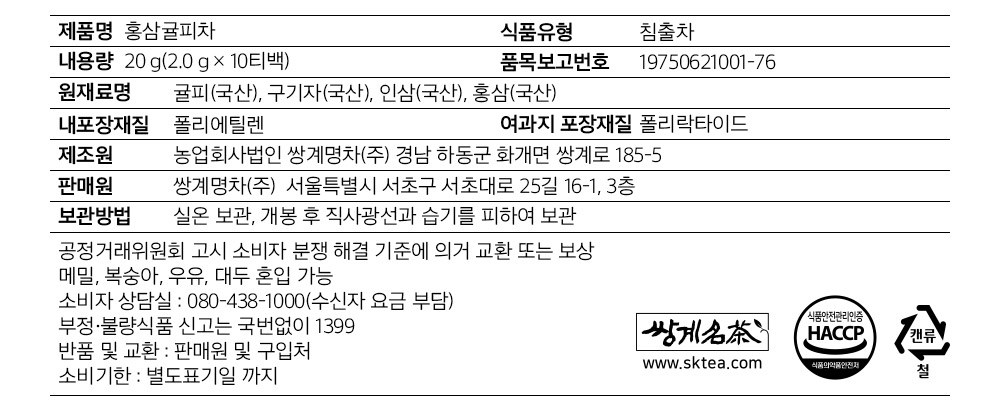 | 포장단위별 내용물의 용량(중량), 수량 | 컨텐츠 참조 | 원재료명 및 함량 | 컨텐츠 참조 |
