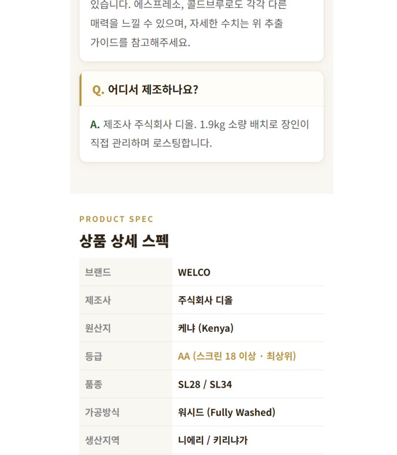 | 제품명 | WELCO 원두커피 | 식품의 유형 | 원두커피 |
