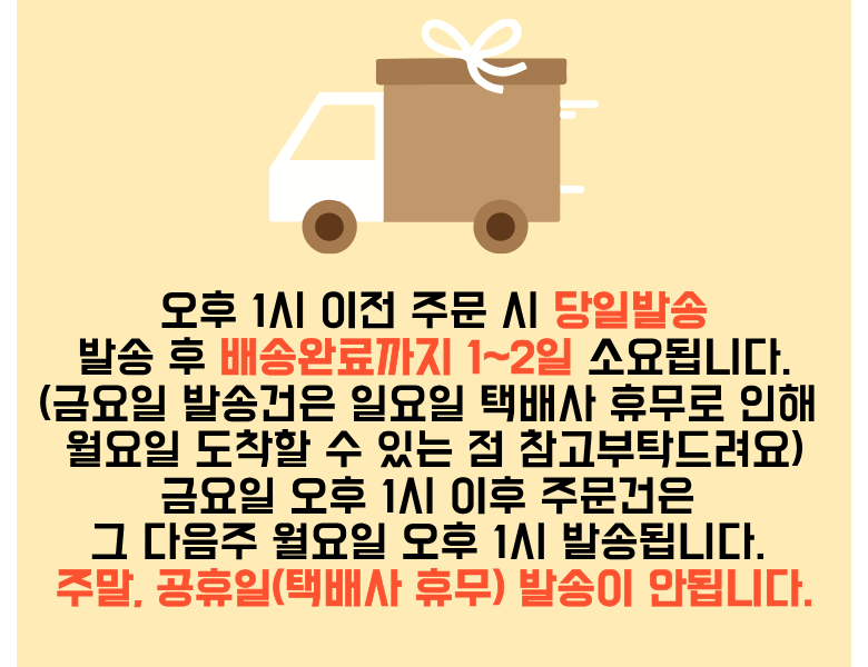 - ㆍ모니터 해상도의 차이로 인해 색상이나 이미지가 실제와 달라, 고객이 단순 변심으로 교환/반품을 무료로 요청하는 경우
