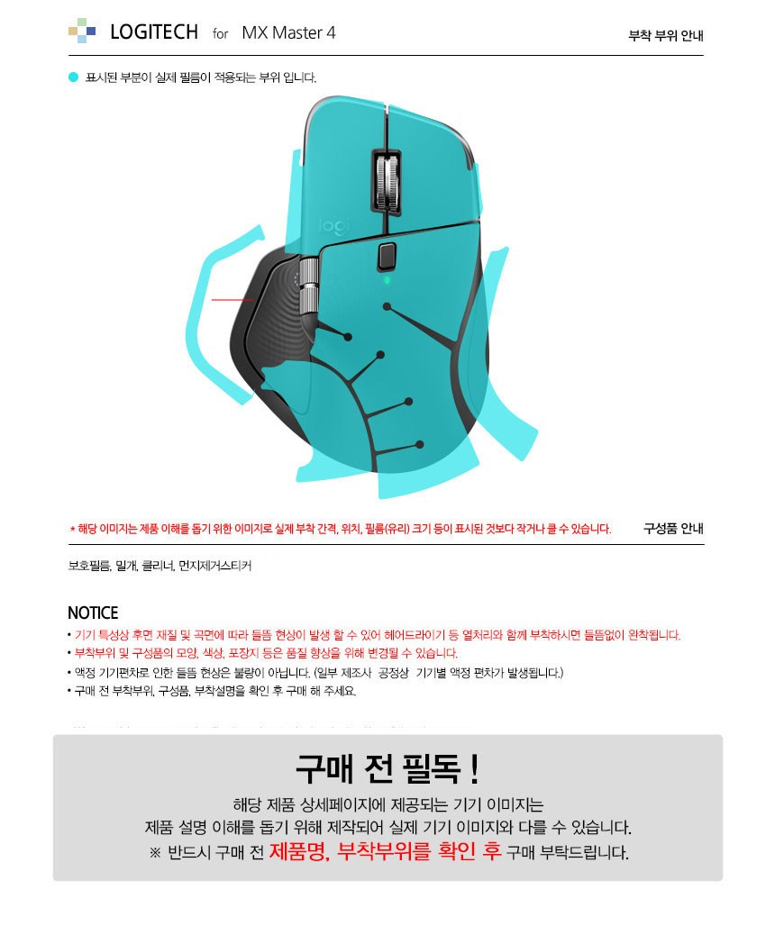 | 품명 및 모델명 | 로지텍 MX 마스터 4 무선 마우스 무광 외부 보호필름 | 인증/허가 사항 | 본품 : 해당없음 ㅣ세정제 : FB23-01-0073 |