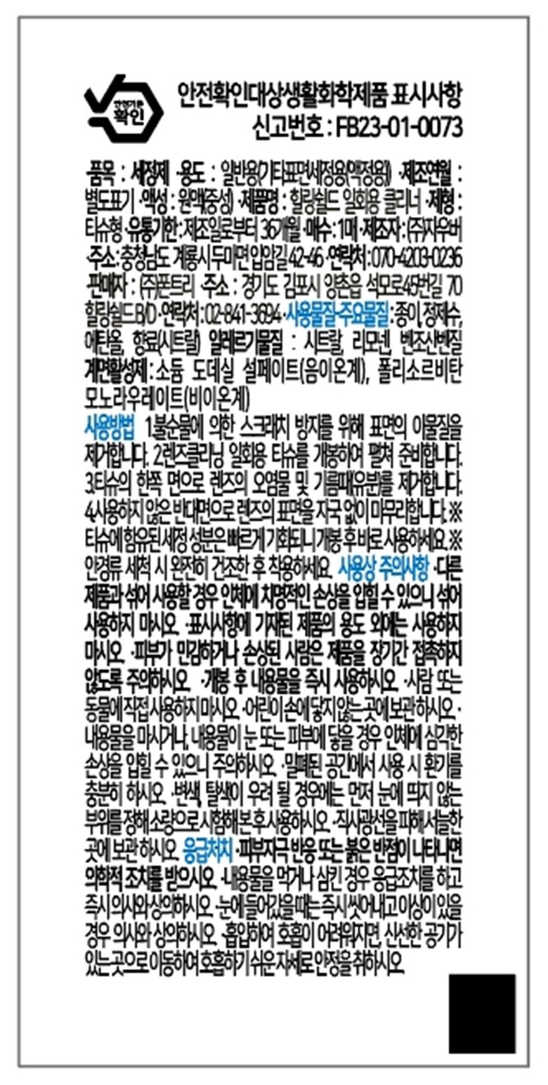 | 제조국(원산지) | 본품 : 대한민국 ㅣ 세정제 : 컨텐츠참조 | 제조자(수입자) | 본품 : 폰트리 ㅣ 세정제 : 컨텐츠참조 |