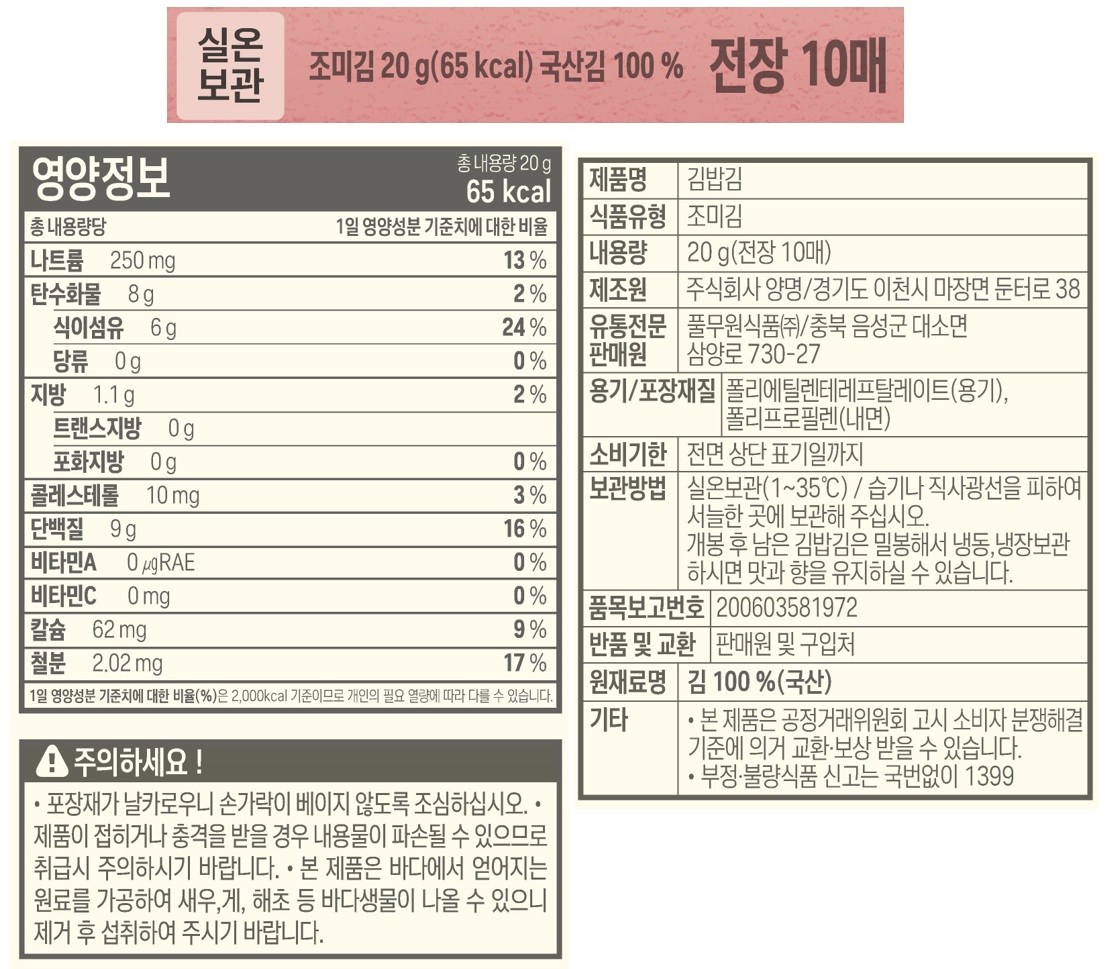 - 김 조리상태: 조미김