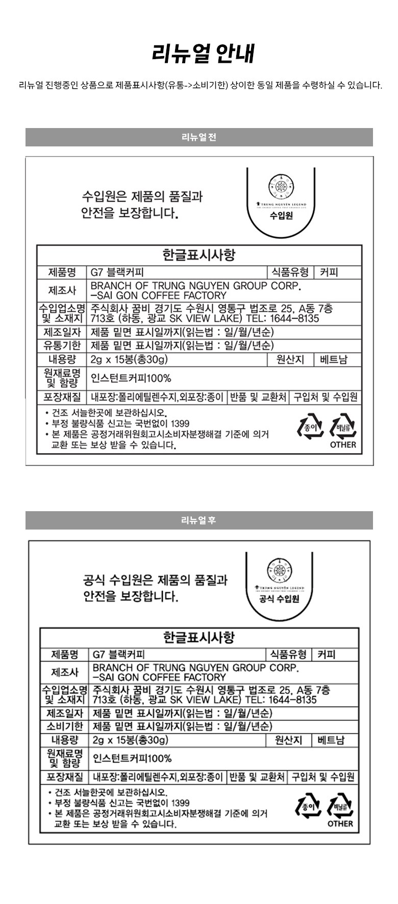 - ㆍ모니터 해상도의 차이로 인해 색상이나 이미지가 실제와 달라, 고객이 단순 변심으로 교환/반품을 무료로 요청하는 경우